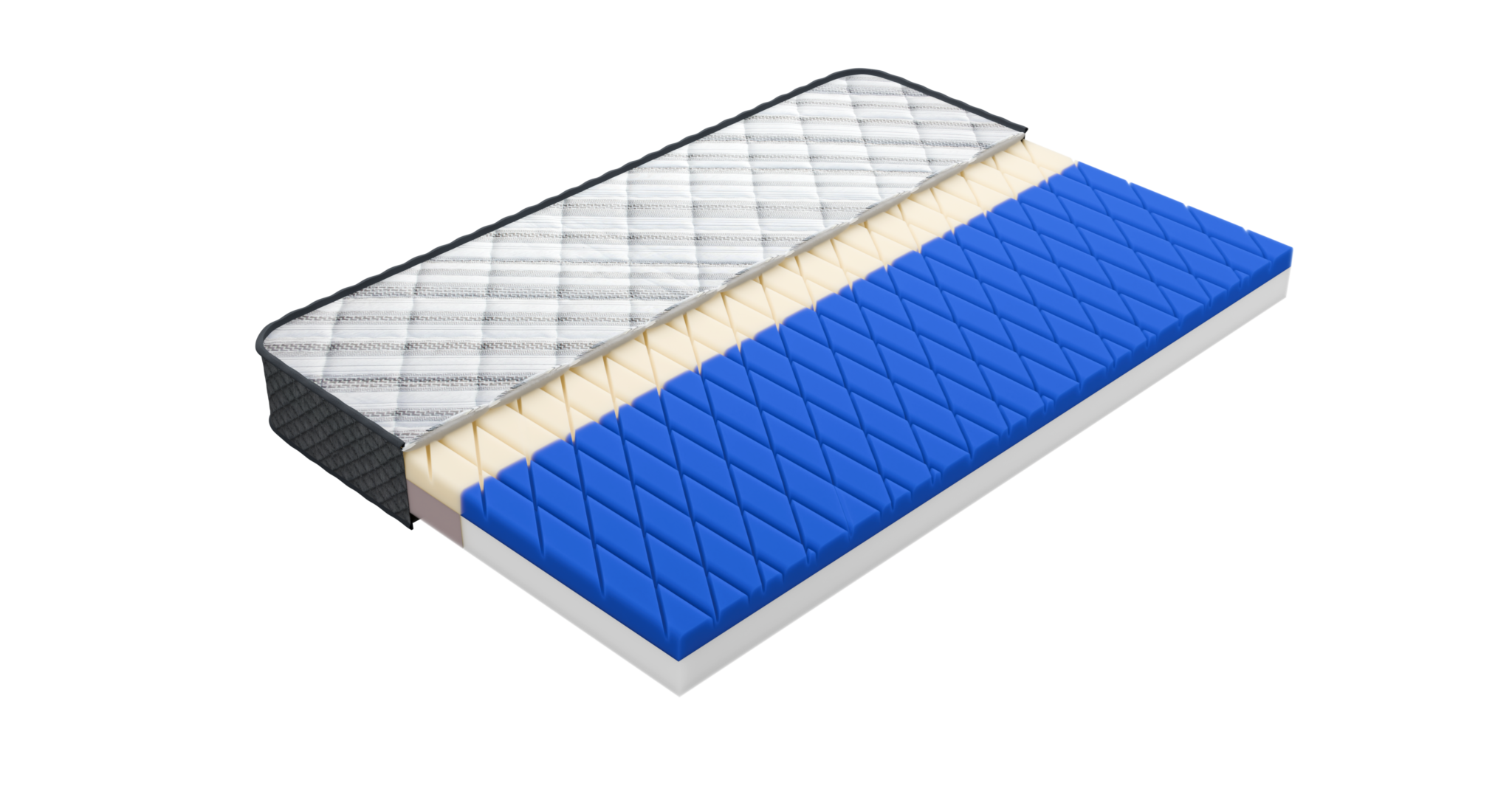 Wielowarstwowy, jednostronny wkład materaca Tao o wysokości ok. 16-18 cm składa się z precyzyjnie dobranych pianek osłoniętych elastyczną tkaniną: